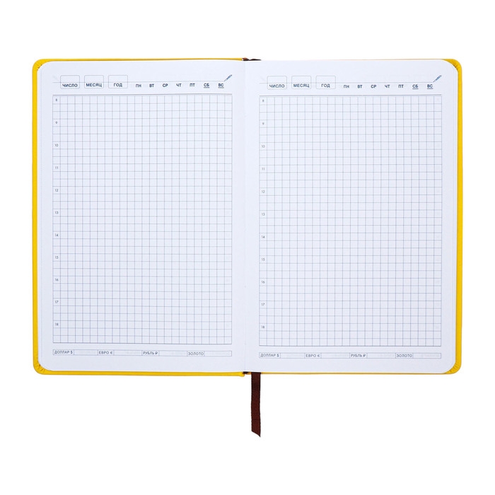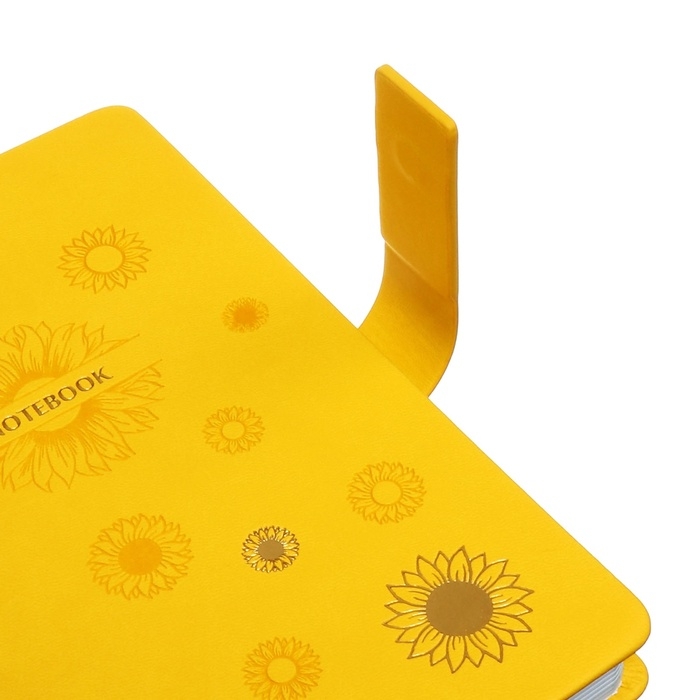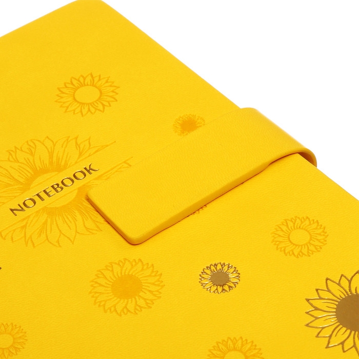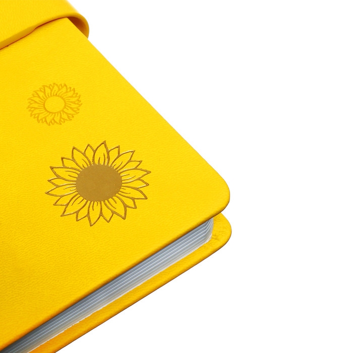 Ежедневник недатированный, А5, 140л, клетка, обл.кожзам, с хлястиком, Цветы, желтый