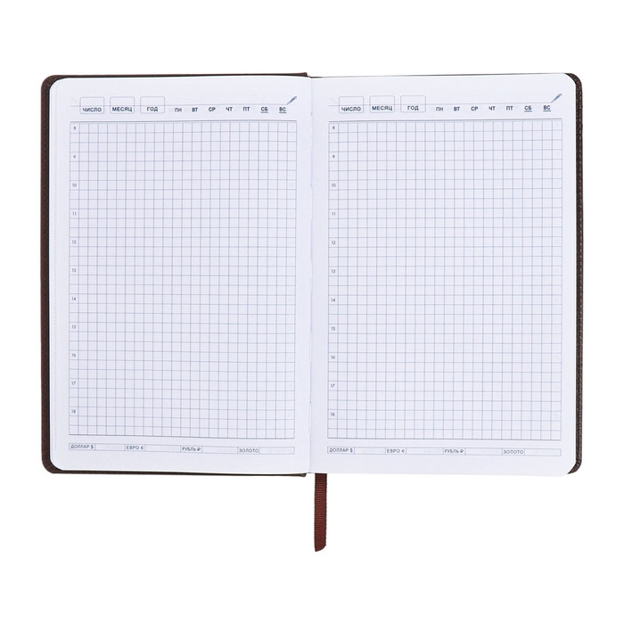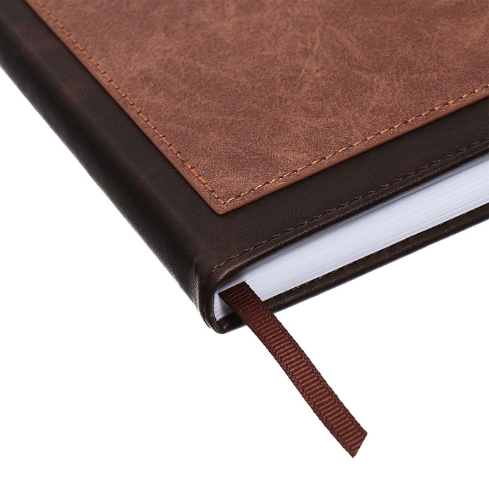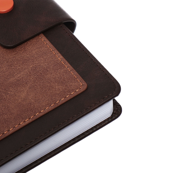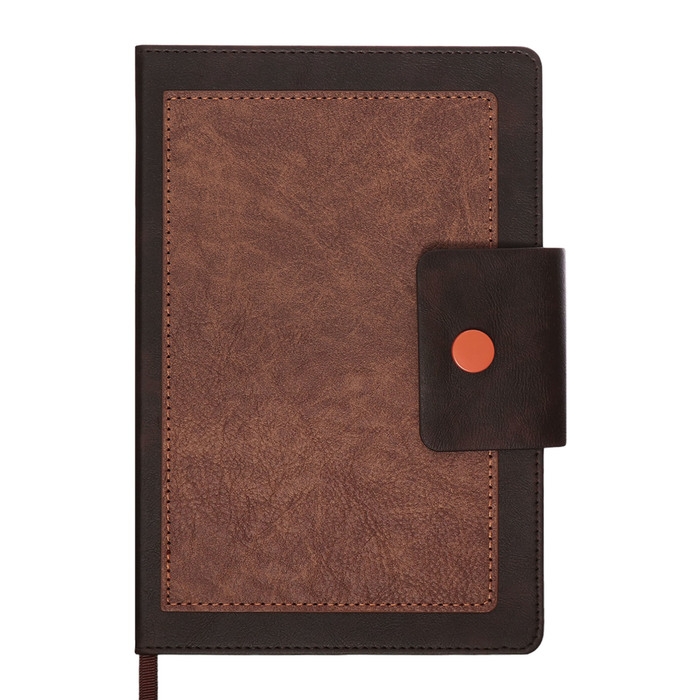Ежедневник недатированный, А5, 140л, клетка, обл.кожзам, на кнопке, Серый/коричневый