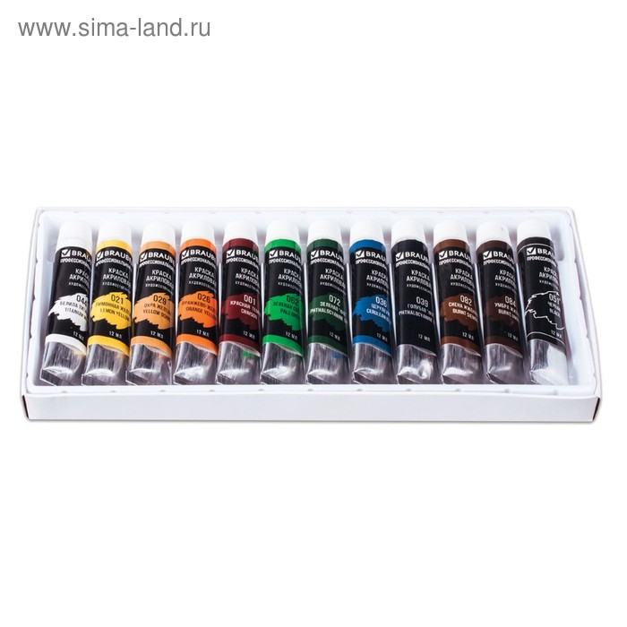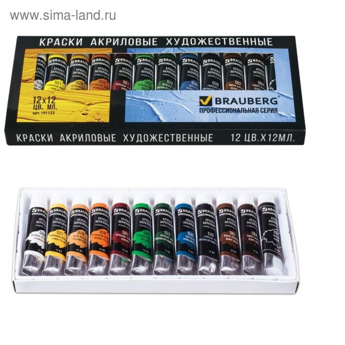 Краска акриловая в тубе, набор 12 цветов х 12 мл, BRAUBERG ART CLASSIC, профессиональная серия, 191122