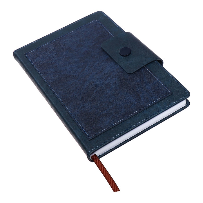 Ежедневник недатированный, А5, 140л, клетка, обл.кожзам, на кнопке, Синий