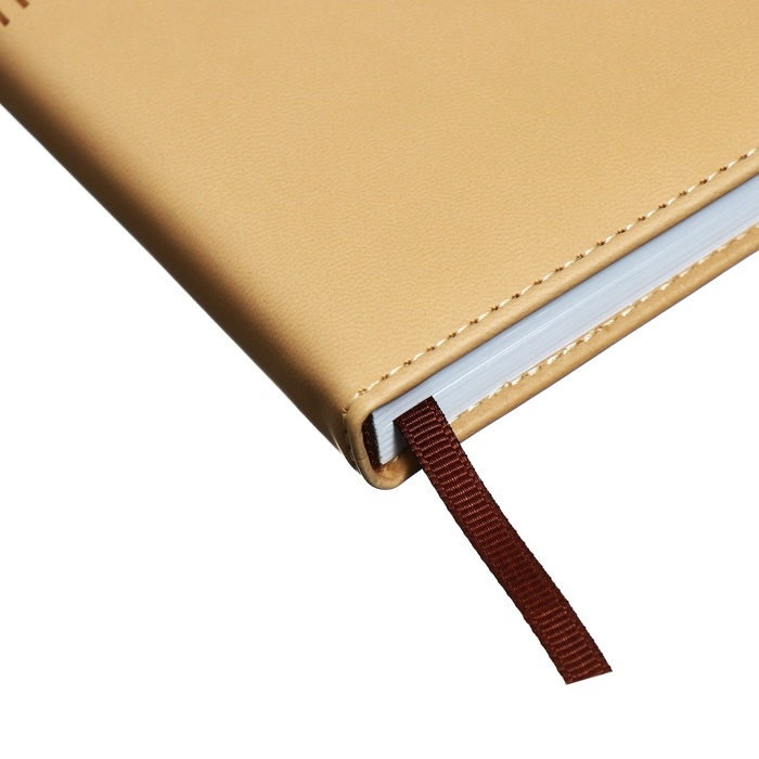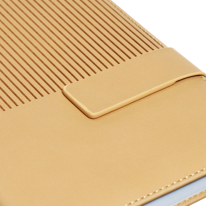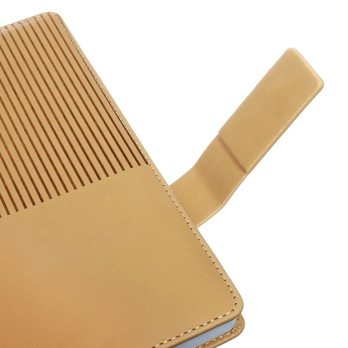 Ежедневник недатированный, А5, 140л, клетка, обл.кожзам, с хлястиком, Полоски бежевый