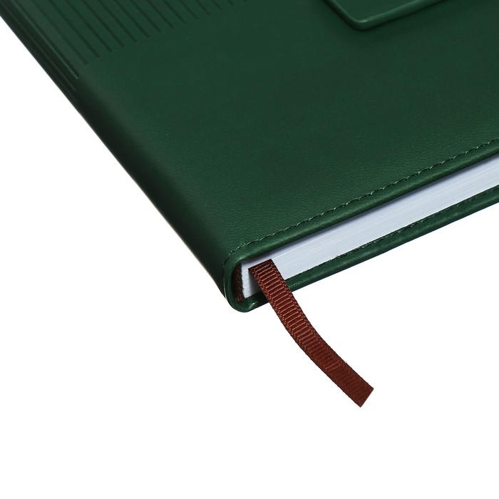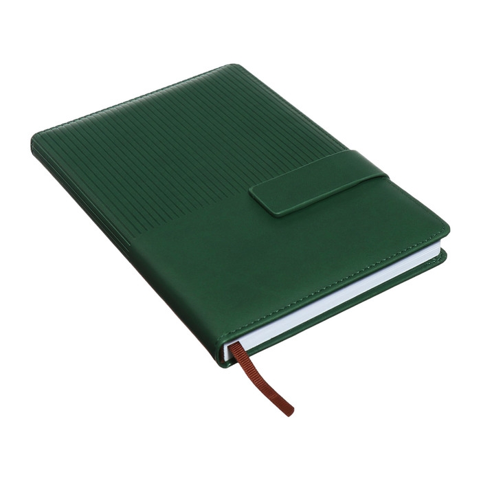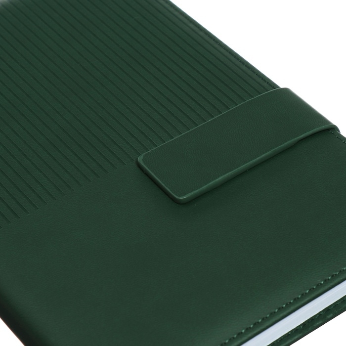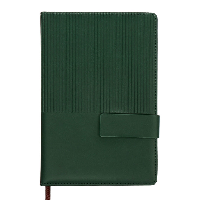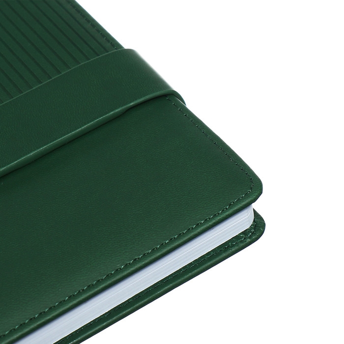 Ежедневник недатированный, А5, 140л, клетка, обл.кожзам, с хлястиком, Полоски изумрудный