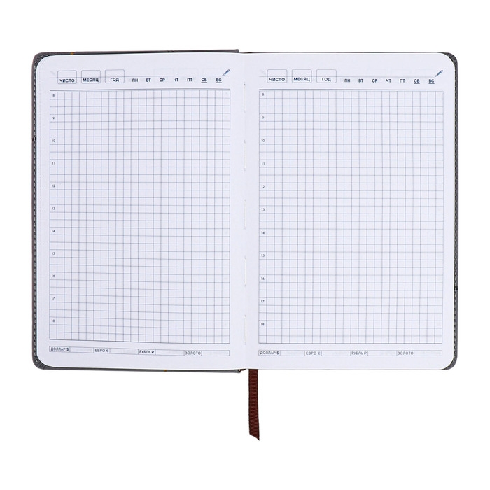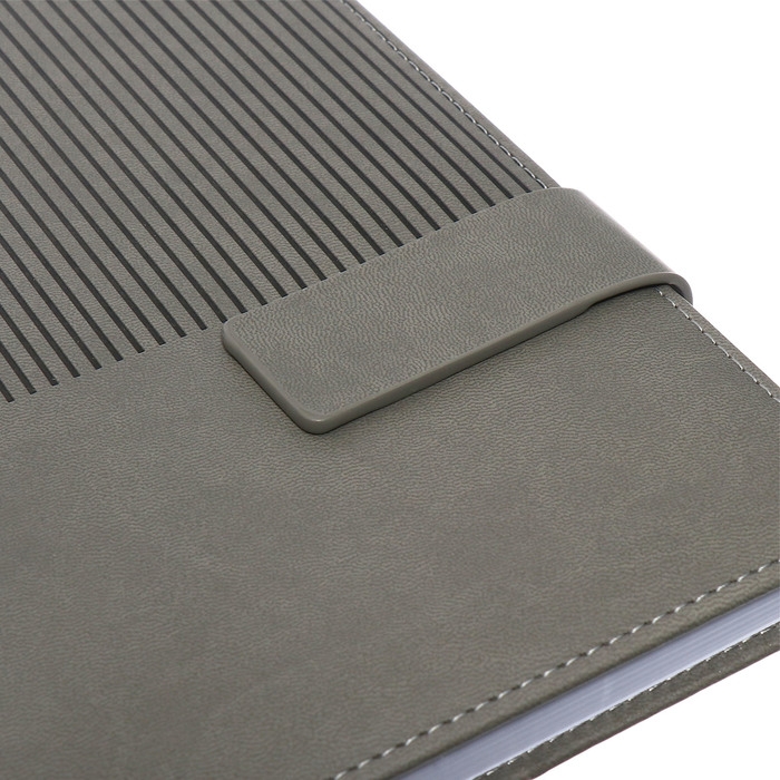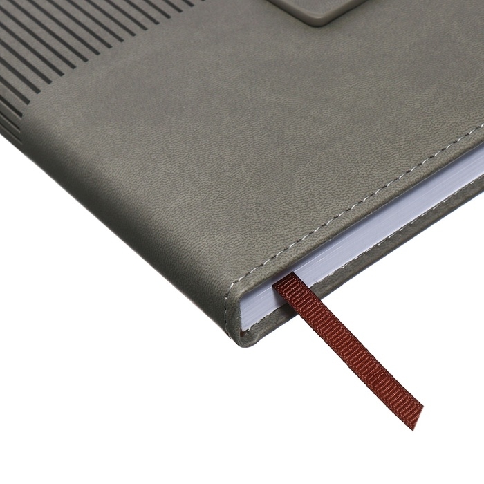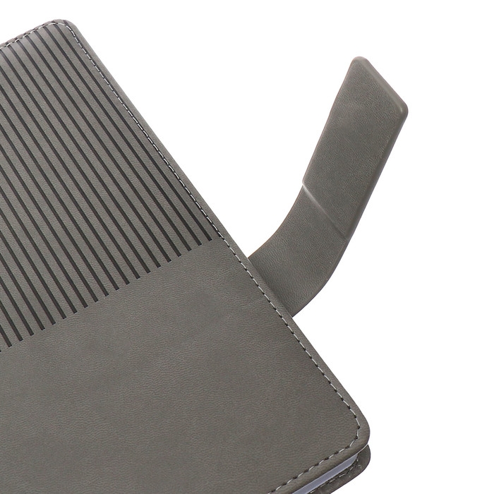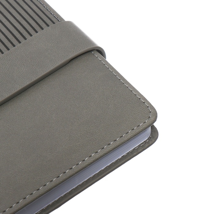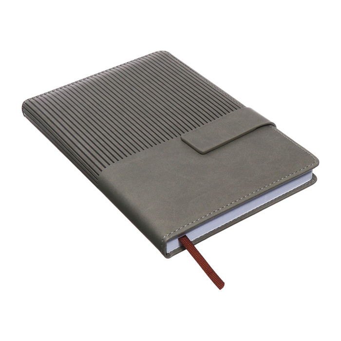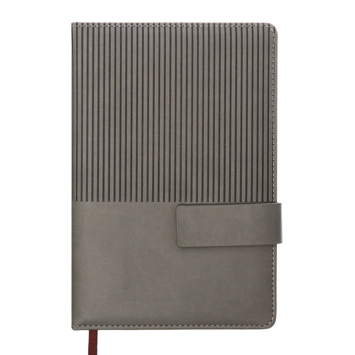 Ежедневник недатированный, А5, 140л, клетка, обл.кожзам, с хлястиком, Полоски серый