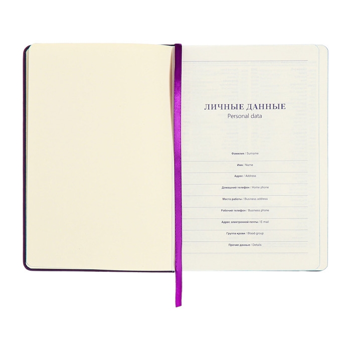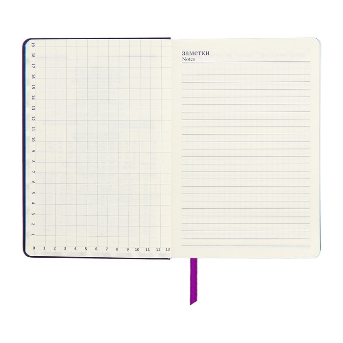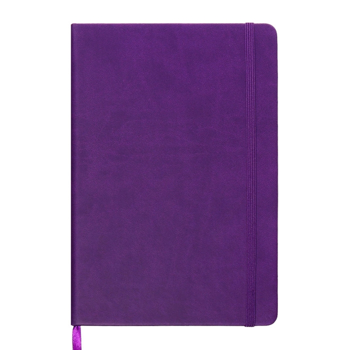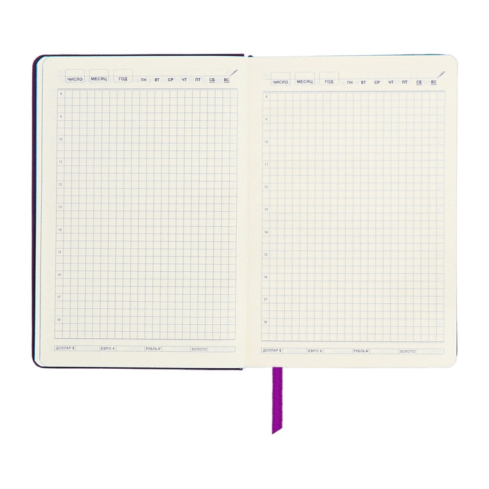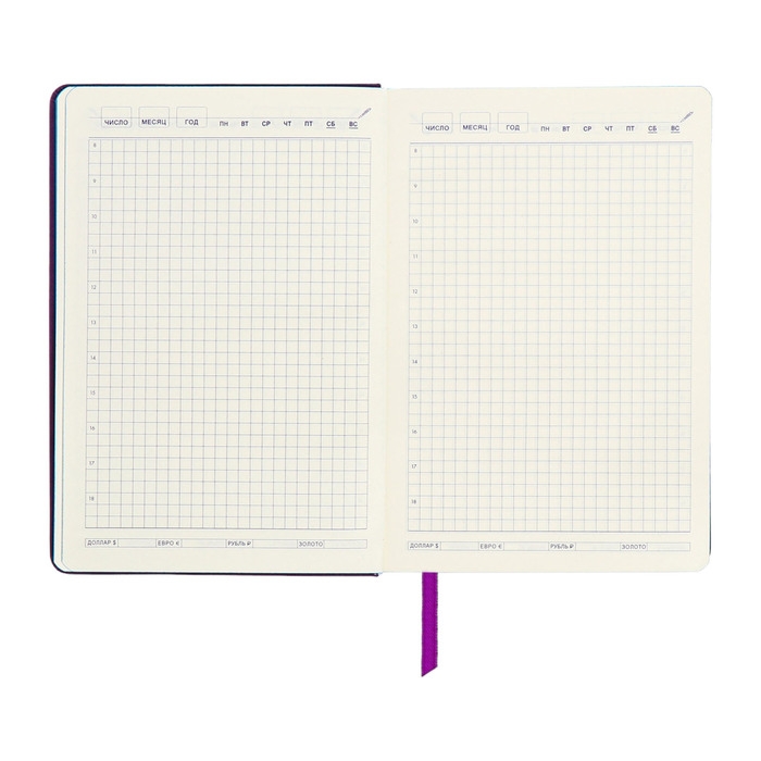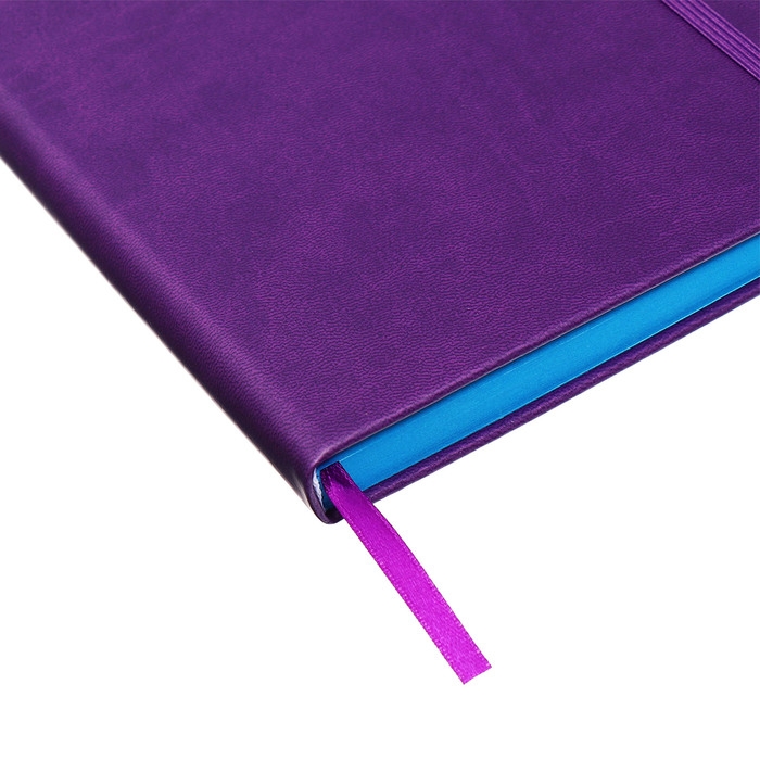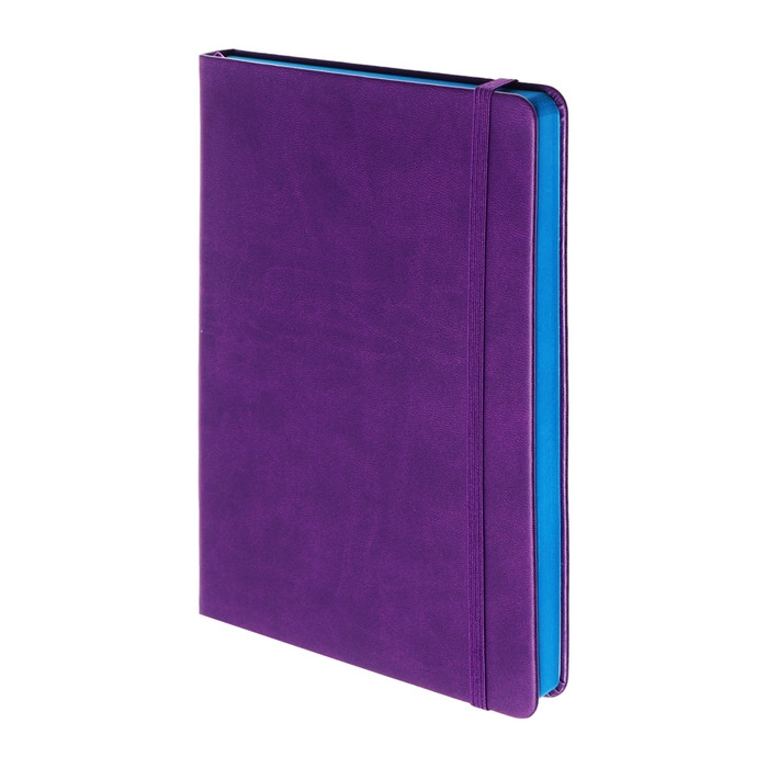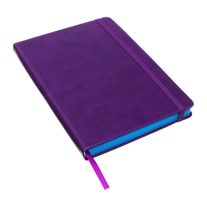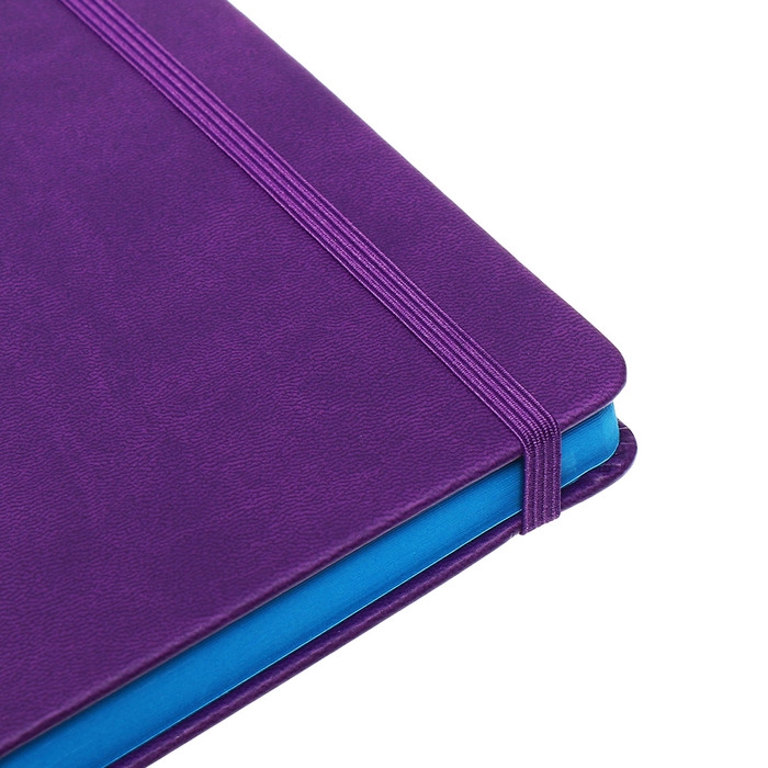 Ежедневник недатированный A5, 140л, клетка, кожзам, на резинке, синий срез, Фиолетовый