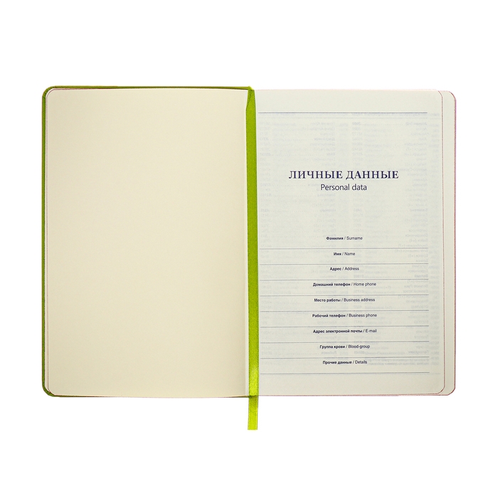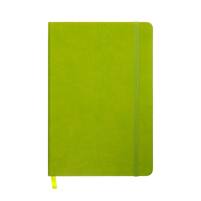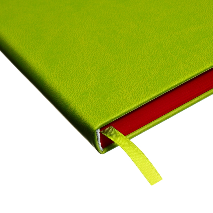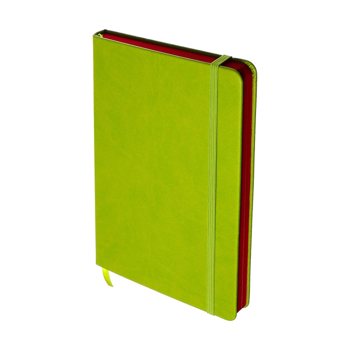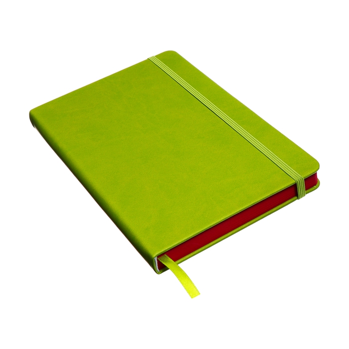 Ежедневник недатированный A5, 140л, клетка, кожзам, на резинке, красный срез, Зеленый