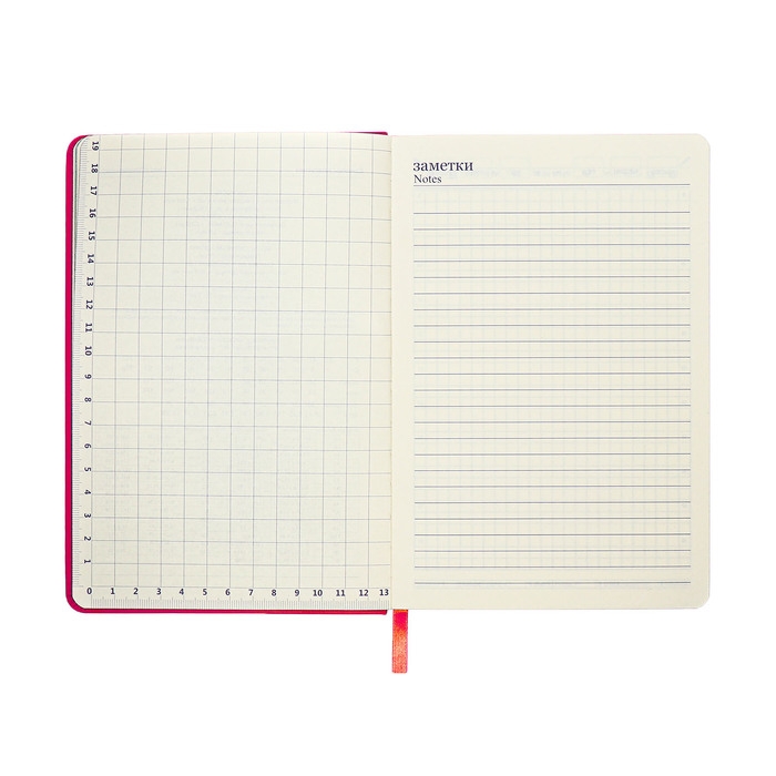 Ежедневник недатированный A5, 140л, клетка, кожзам, на резинке, черный срез, Фуксия