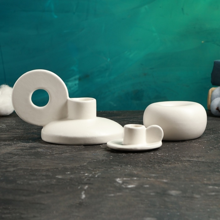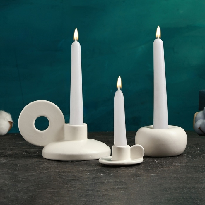 Набор подсвечников "Лео, Саймон, Эдвард" белый глянец, 3шт/8х10см/3х6см/4х7см