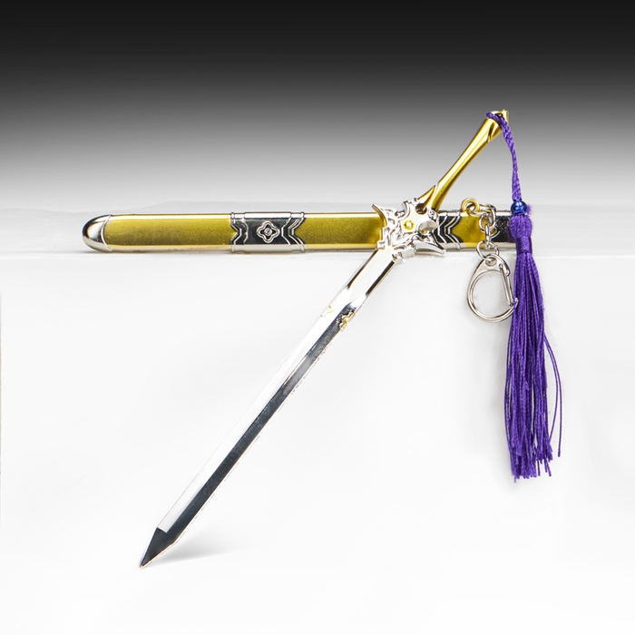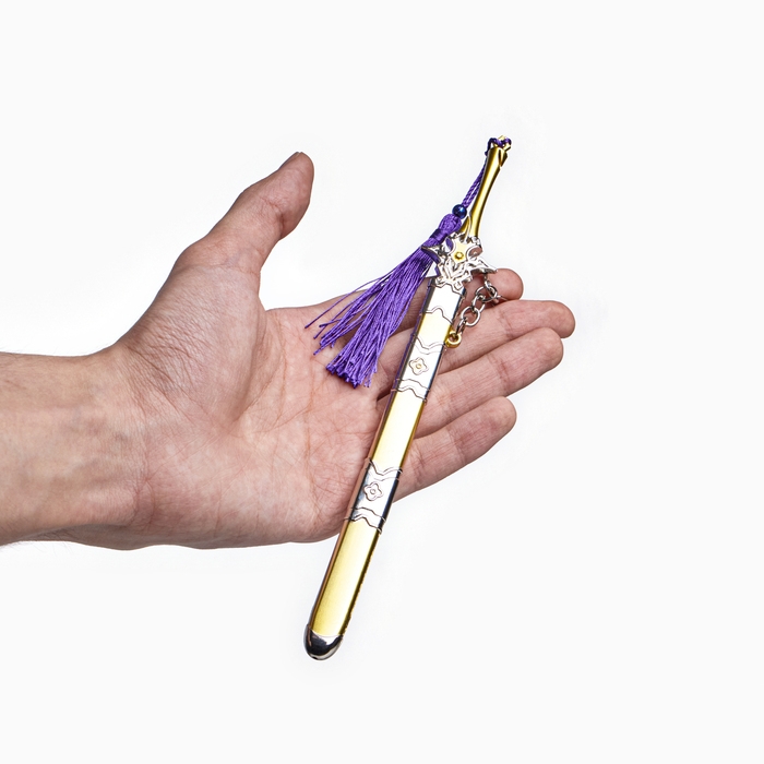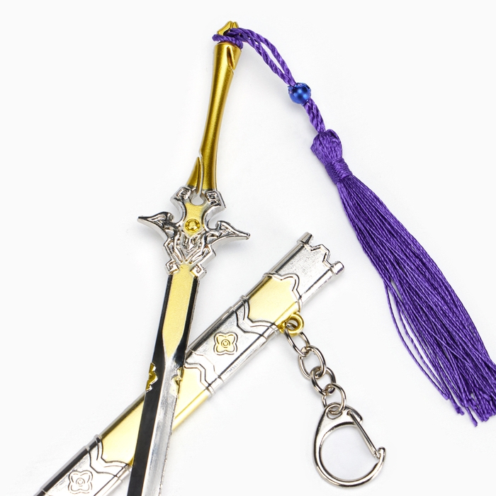 Сувенирное оружие подвесное мини "Меч в стиле Геншин", брелок, 21 см, золотой с фиолетовым