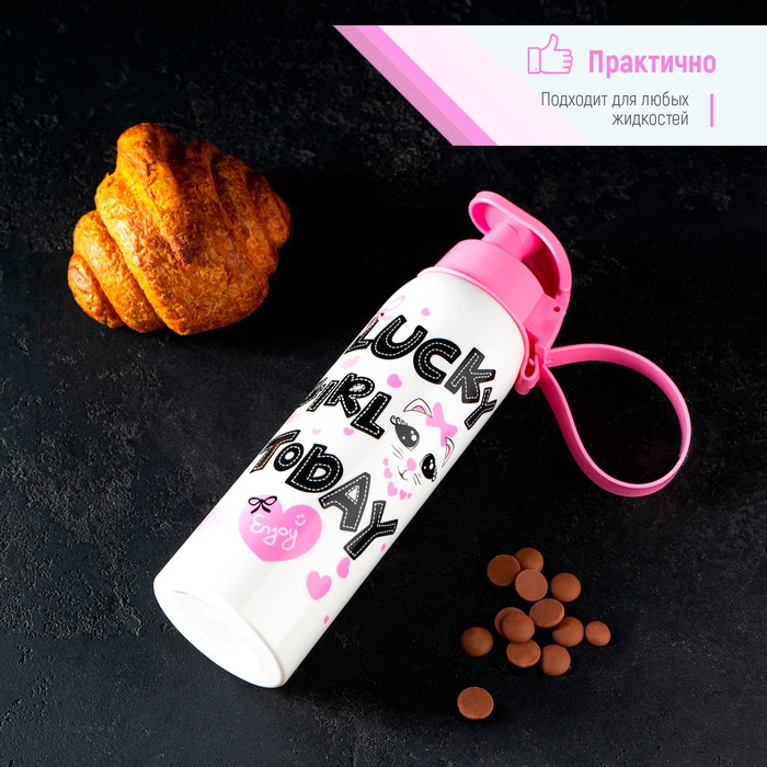 Бутылка для воды пластиковая «Кот», 500 мл, цвет белый