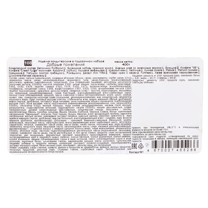 Подарочный набор конфет "Вкусняшка" — это сладкое приключение для детей и взрослых! Этот уникальный набор, наполненный изысканными сладостями и незабываемыми моментами, станет идеальным подарком на Новый год и Рождество. Внутри вас ждут веселые и вкусные конфеты,, где каждая их них — это маленькая радость. В этом подарке, независимо от ваших предпочтений, каждый найдет что-то по своему вкусу!