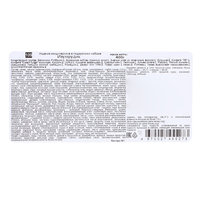 "Изумрудик" — это не просто сладкое угощение, а настоящий подарок для души. Идеально подходит в качестве подарка для ребенка на Новый год и Рождество, что создаст атмосферу радости, счастья и веселья Пусть змея, символизирующая мудрость и процветание, станет вашим проводником в этот чудесный год, а сладости из набора "Изумрудик" добавят незабываемый вкус в каждый момент прадника. Подарите себе и своим близким частичку волшебства с этим набором!
