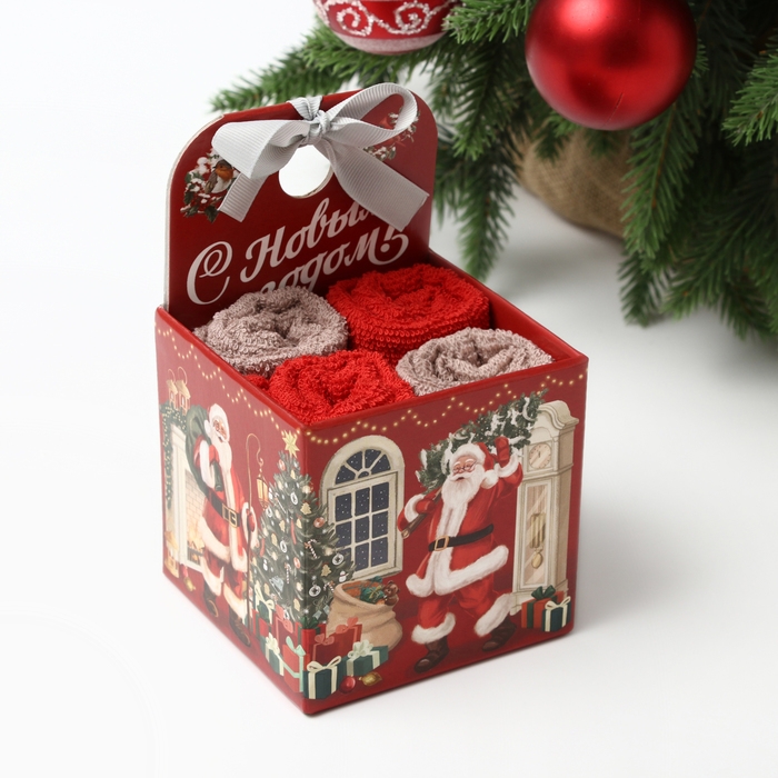 Набор махр. полотенец Этель "Санта" 30х30 см-4шт, хл 340г/м2