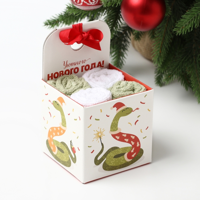 Набор махр. полотенец Этель "Праздничная змея" 30х30 см-4шт, хл 340г/м2