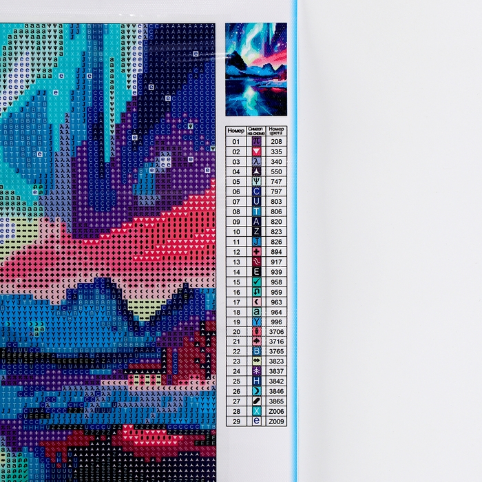 Вам предстоит разложить кристаллики карандашом по пронумерованной схеме. Холст с клеевым покрытием будет надёжно удерживать стразы.