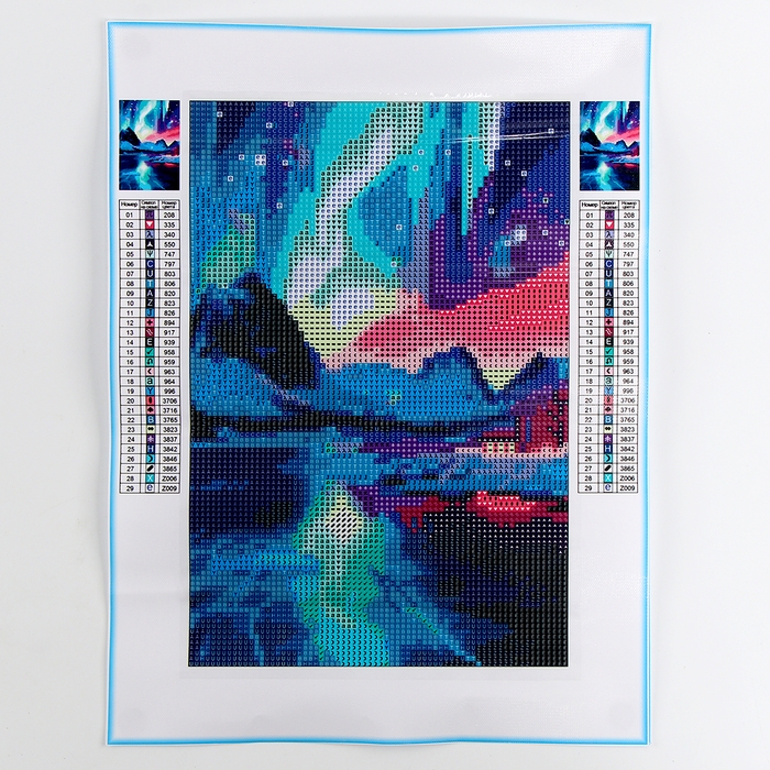 Алмазная мозаика на новый год с полным заполнением со светящимися стразами на холсте «Северное сияние», 20 х 30 см, новогодний набор для творчества