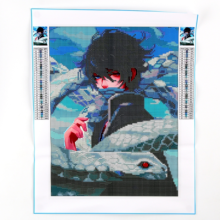 Вам предстоит разложить кристаллики карандашом по пронумерованной схеме. Холст с клеевым покрытием будет надёжно удерживать стразы.