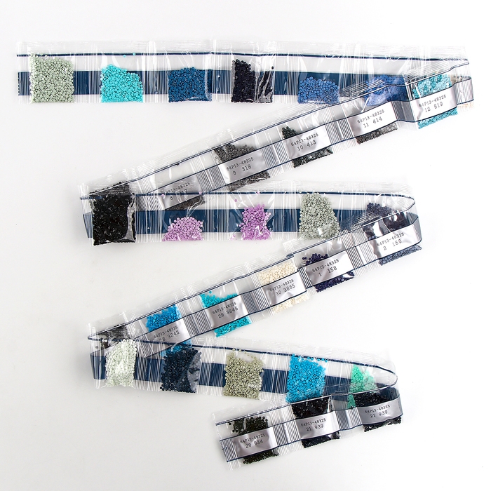 - Из пакетика с номером, который соответствует схеме, отсыпьте в ёмкость немного страз.