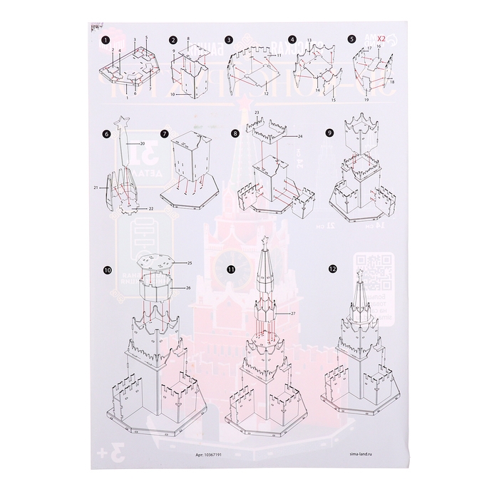 3D Конструктор «Спасская Башня», 31 деталь