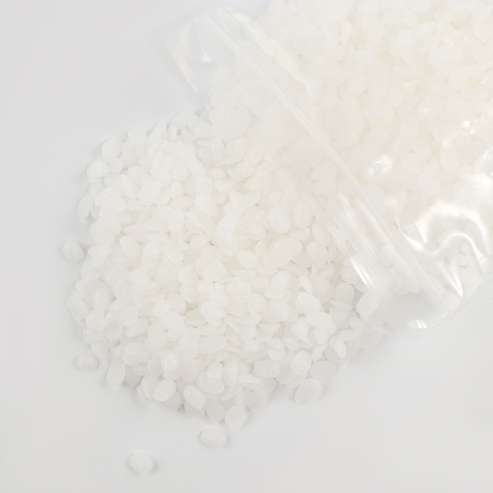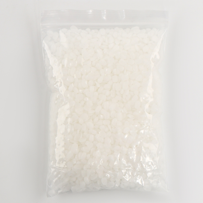 - Положи хлопья воска и кусочек красителя в ёмкость которую можно нагревать. Помести её в кастрюлю с горячей водой. Нагревай воск на водяной бане до жидкого состояния.