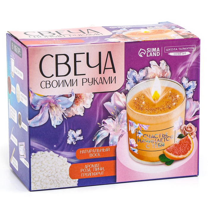 Свеча своими руками. Создание цветной ароматической свечи с блестками «Счастье начинается с тебя», набор для творчества