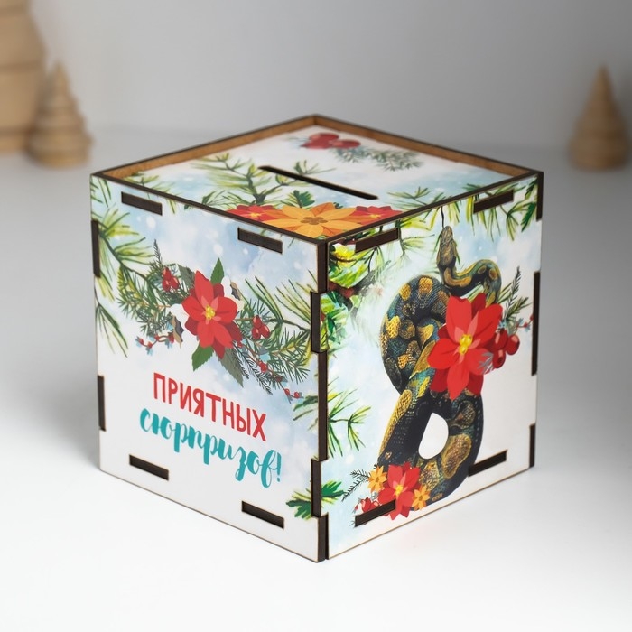 Копилка куб "Змея. Приятных сюрпризов" 10х10х10 см