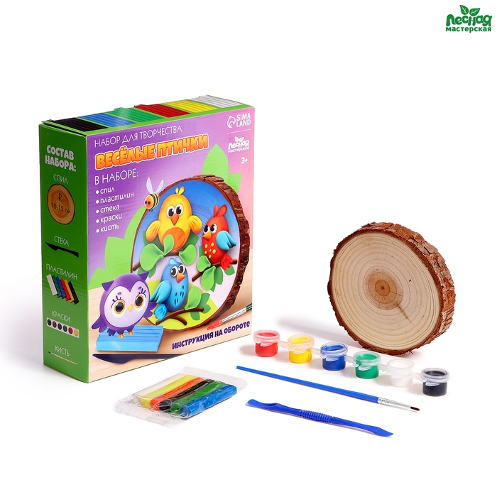 Роспись и лепка по дереву для детей. Набор для творчества «Веселые птички»