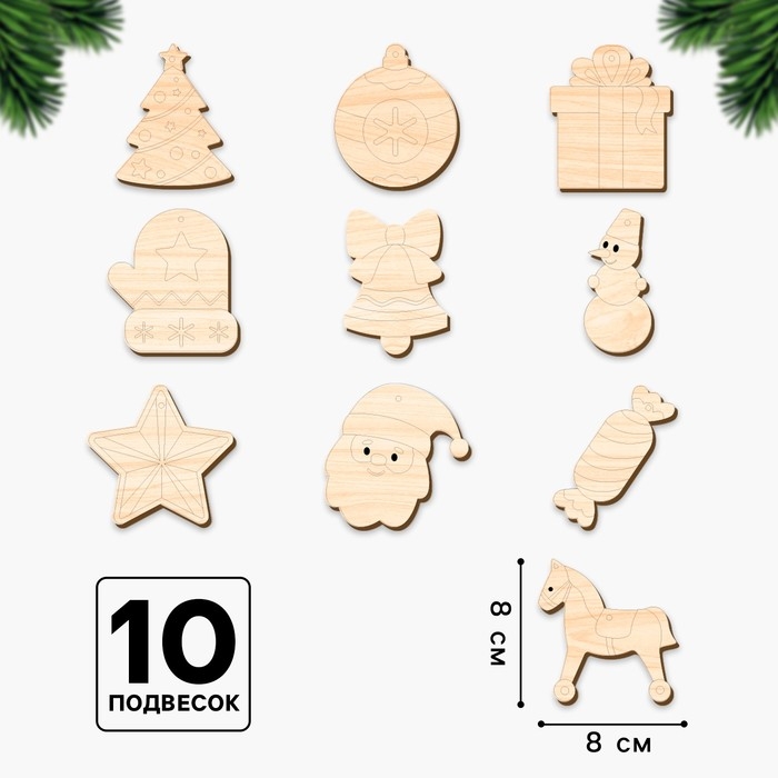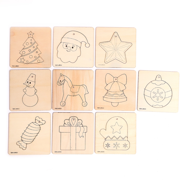 Основы для росписи и выжигания на новый год «Роспись по дереву. Ёлочные подвески», новогодний набор для творчества