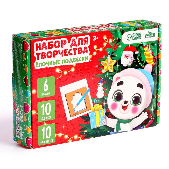 Набор для творчества увлечёт ребёнка надолго. Он сможет сделать подвески для украшения ёлки и нарисовать открытки для друзей и семьи.