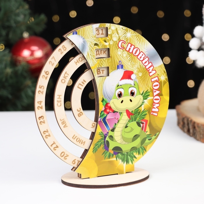 Вечный календарь настольный деревянный "С Новым годом!" символ года, 21 х 21 см