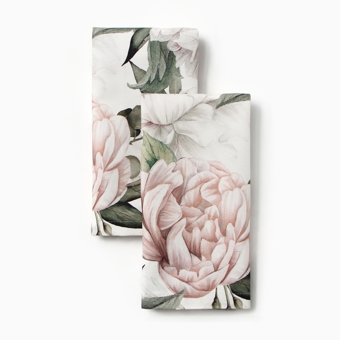 Набор салфеток с декорат. кольцами Этель "Пионы" 40х40 см - 2 шт, 100% хл, саржа 190 г/м2