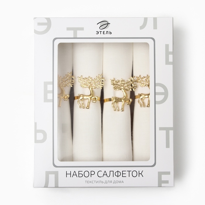 Набор салфеток с декорат. кольцами Этель Еco style 46х46 см - 4 шт, 100% лён