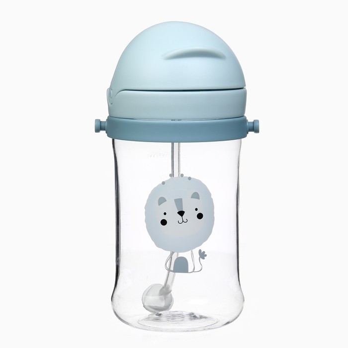 Поильник - непроливайка детский с силиконовой трубочкой и грузиком, от 9 мес., 350 мл., на ленте, цвет голубой, Крошка Я
