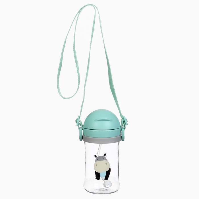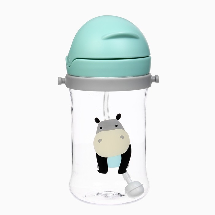 Поильник - непроливайка детский с силиконовой трубочкой и грузиком, от 9 мес., 350 мл., на ленте, цвет бирюзовый, Крошка Я