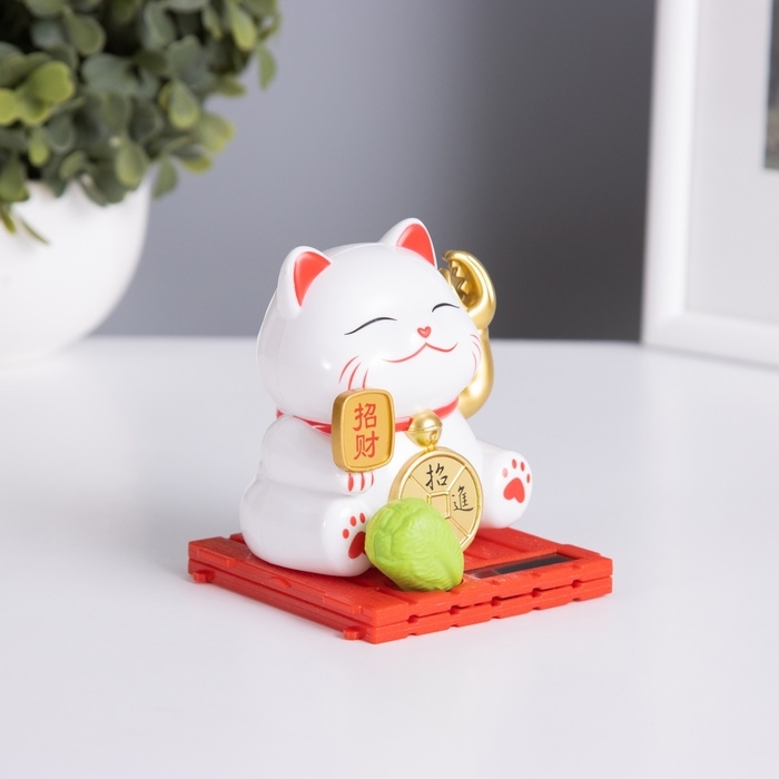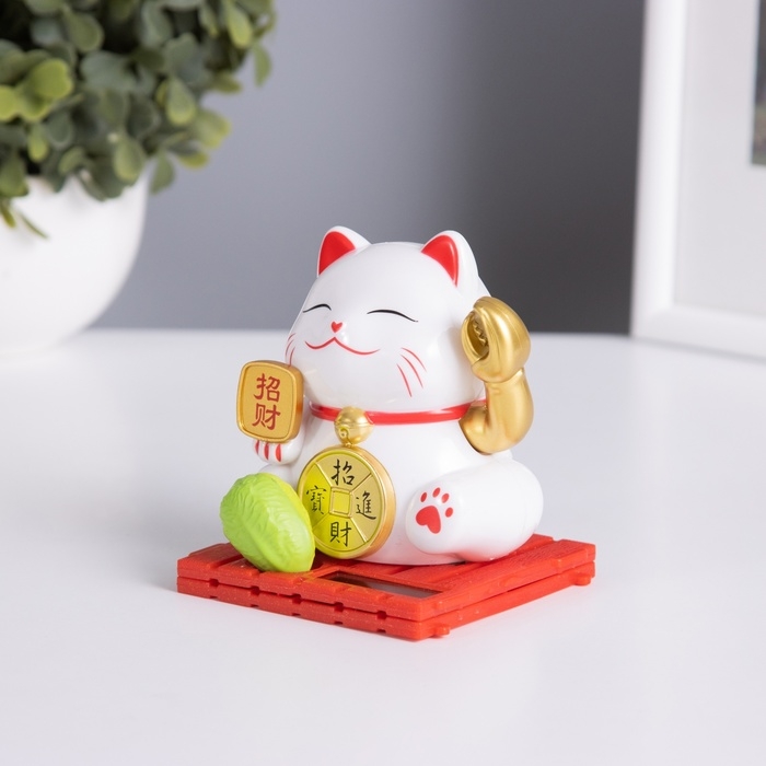 Маятник пластик "Белый Манэки-нэко с клешней" 8х8х8,5 см