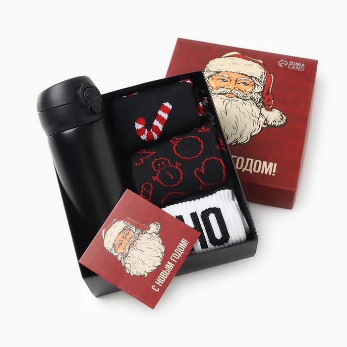 Подарочный набор термос и носки 3 пары KAFTAN "С новым годом" р. 41-44 (27-29 см)
