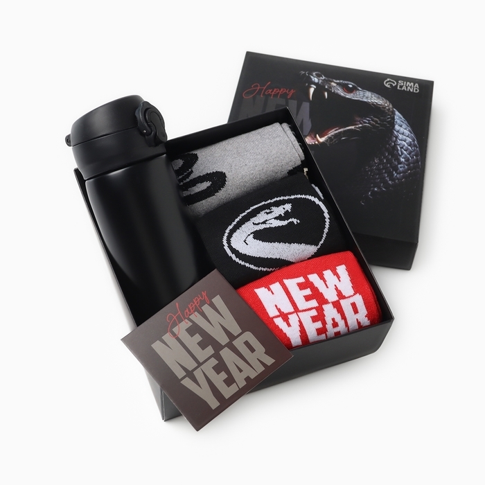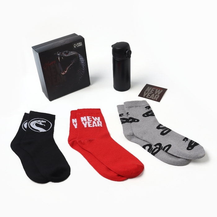 Подарочный набор термос и носки 3 пары KAFTAN New year р. 41-44 (27-29 см)
