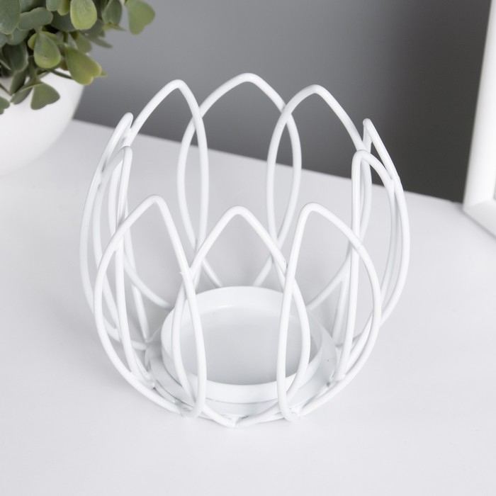 Подсвечник на 1 свечу металл d=5 см "Цветок Магнолии" белый 10,5х10,5х9 см