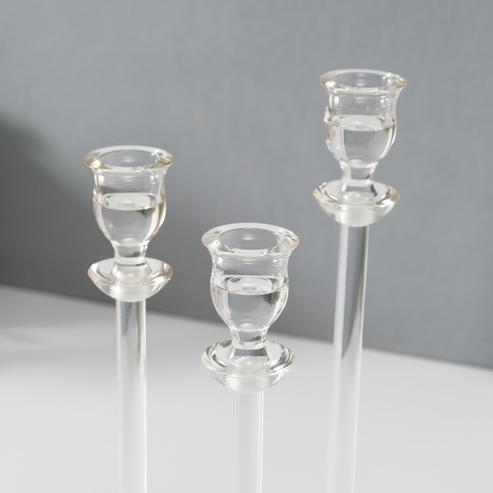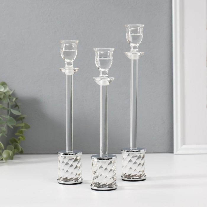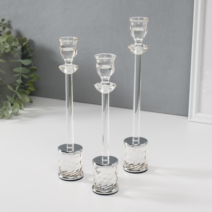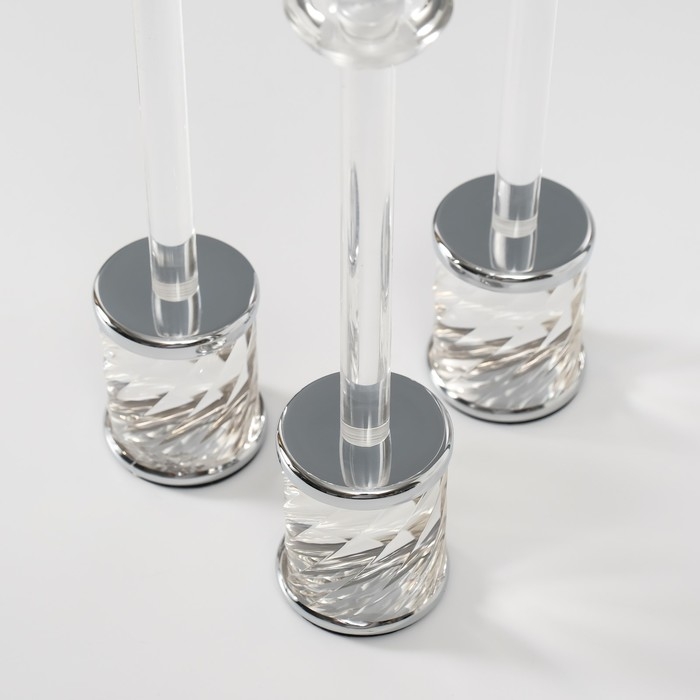 Подсвечник металл, акрил "Вихрь" d=2,2 см, набор 3 шт h=25,5 см, 23,5 см, 21 см