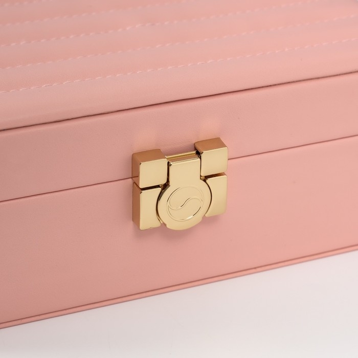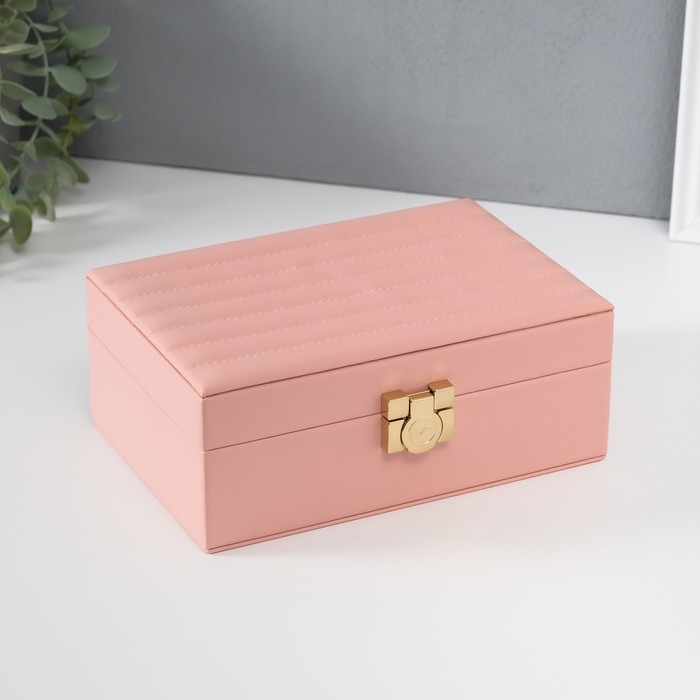Шкатулка кожзам для украшений "Стёганная. Полоски" розовая 14х20х8 см