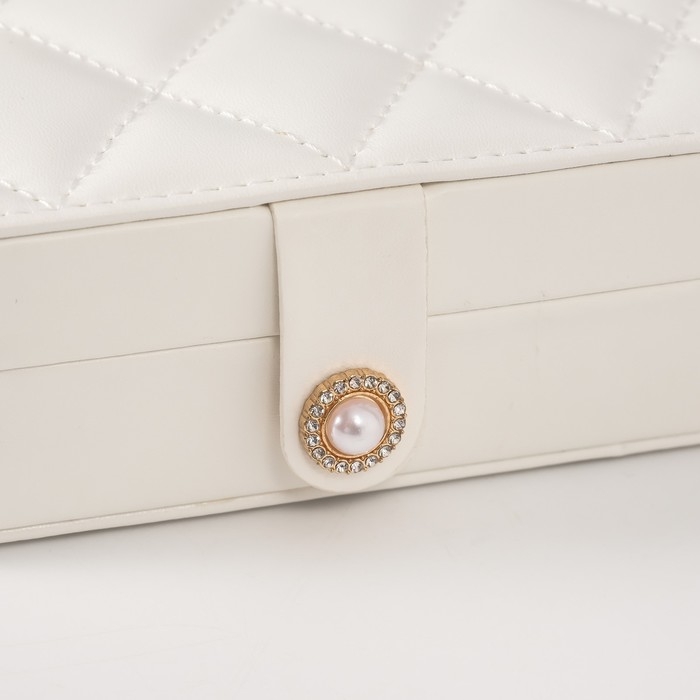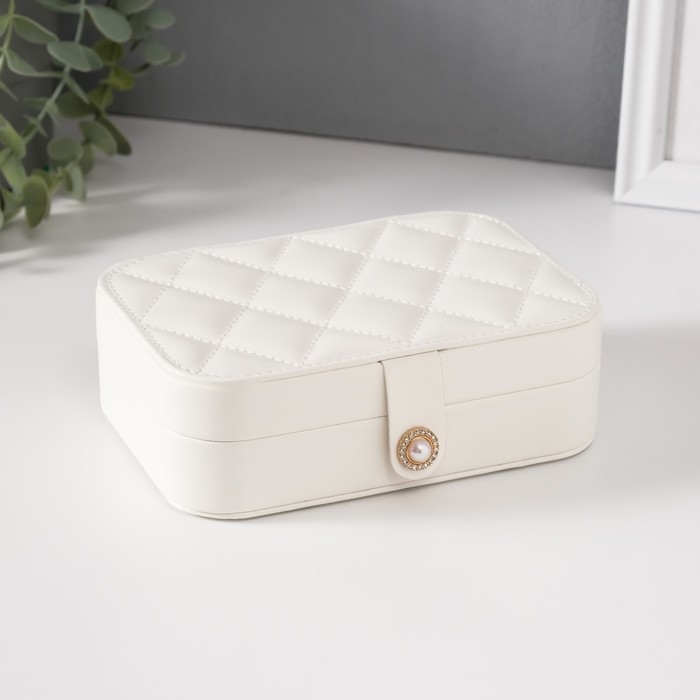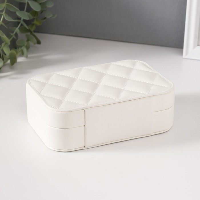 Шкатулка кожзам для украшений "Стёганная. Ромбы" белая 11х16х5 см