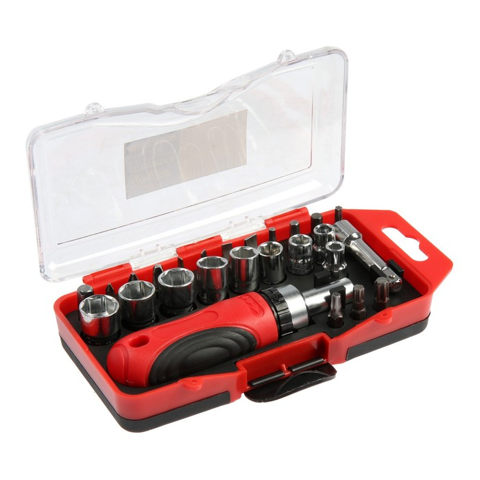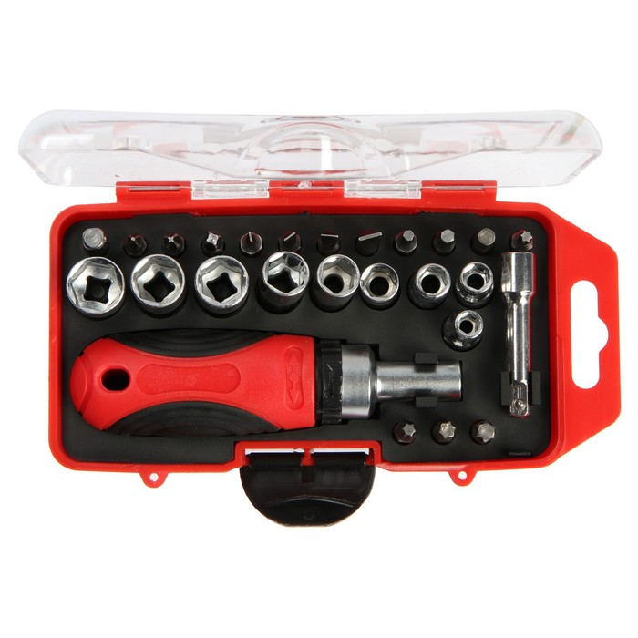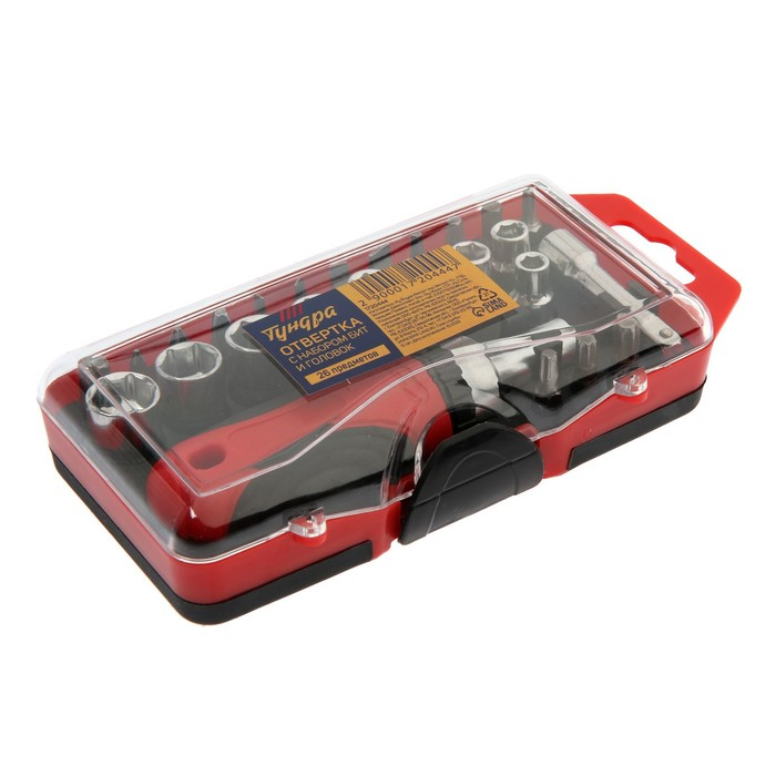 Отвертка с набором бит и головок ТУНДРА, реверсивная, 2К рукоятка, в кейсе, 26 предметов