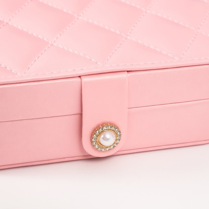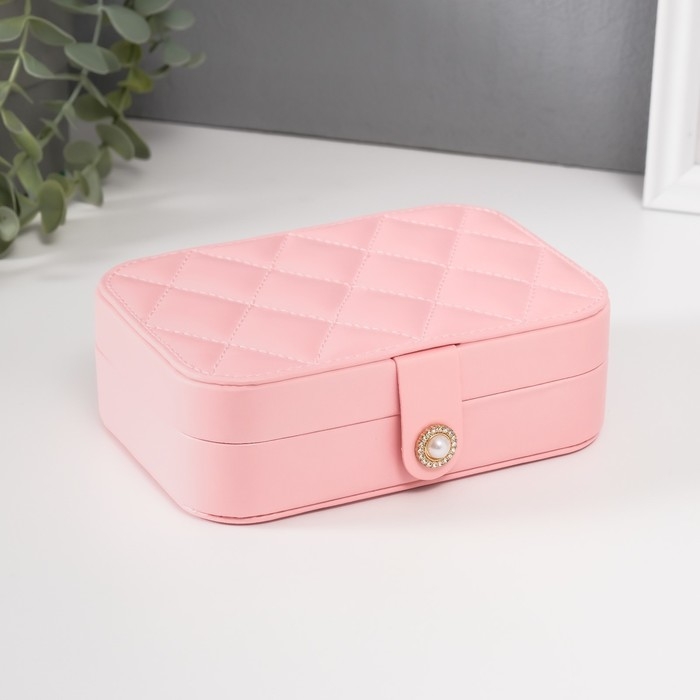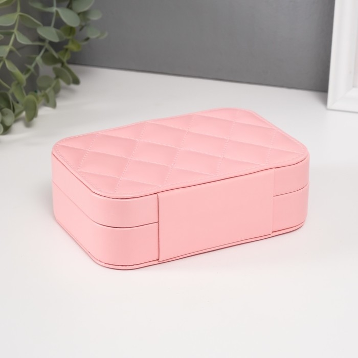 Шкатулка кожзам для украшений "Стёганная. Ромбы" розовая 11х16х5 см