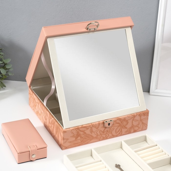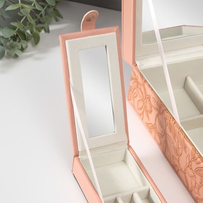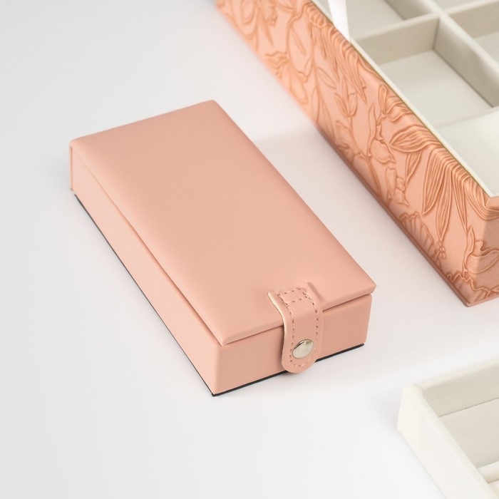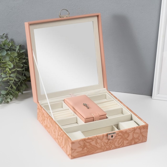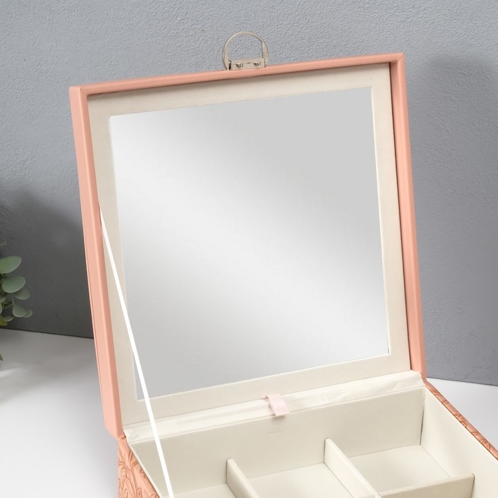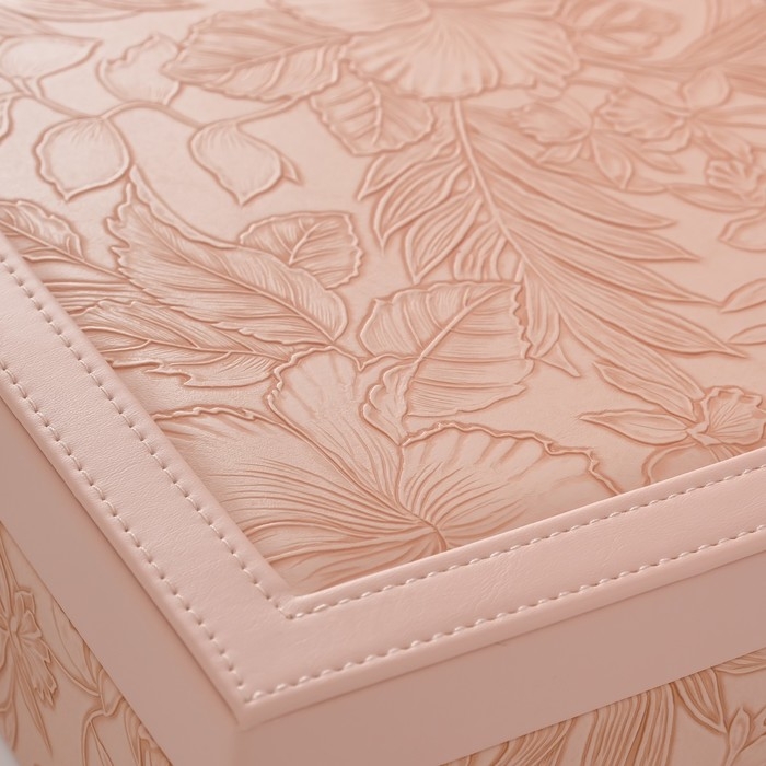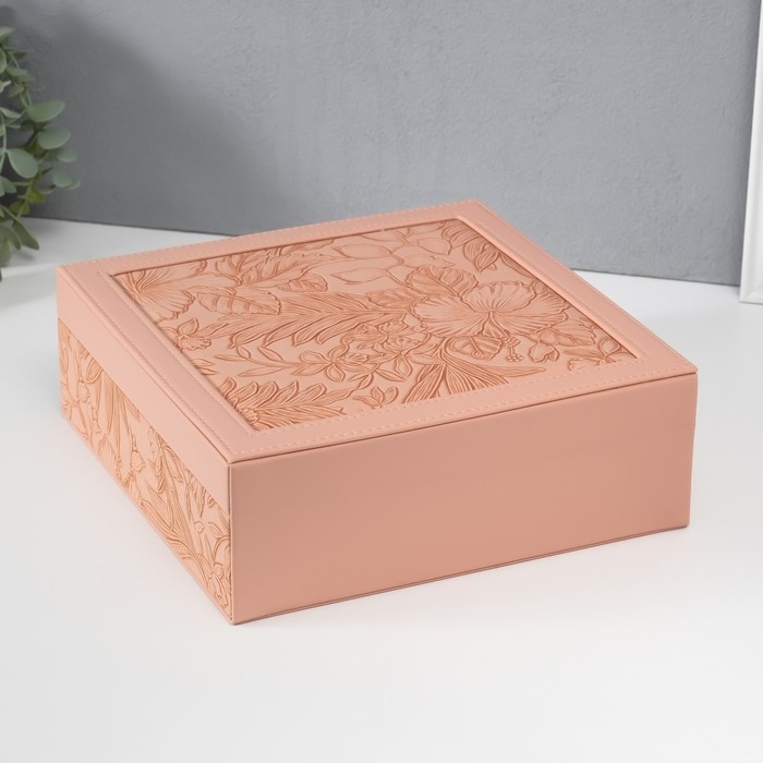Шкатулка кожзам для украшений "Цветы" тиснение, розовая 25х25х8 см