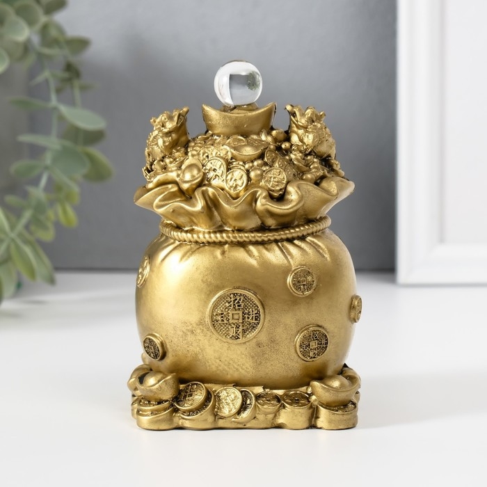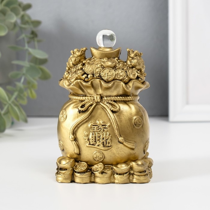 Нэцкэ полистоун под бронзу "Две жабы на мешке с монетами" 7,2х6,2х12 см