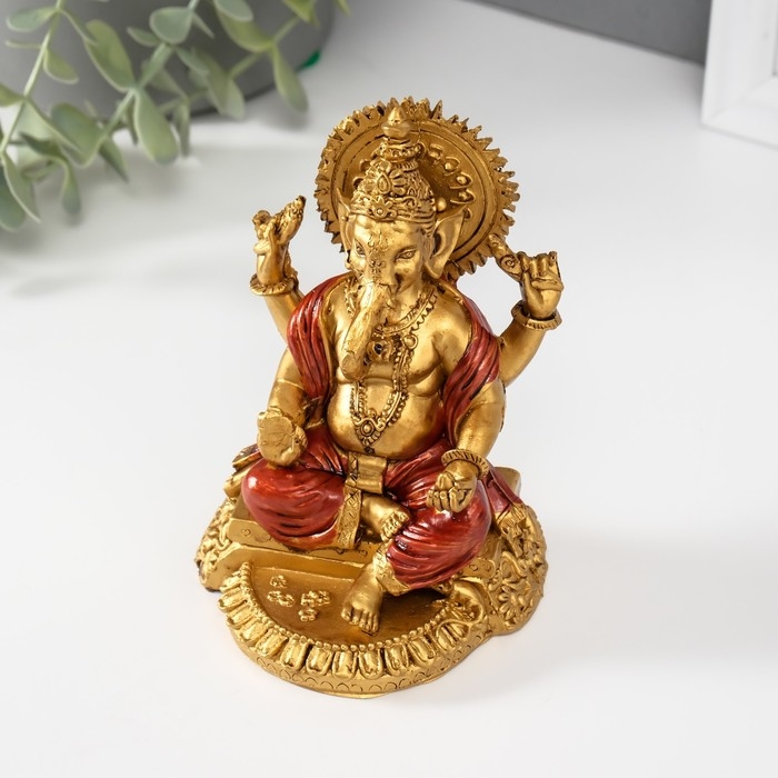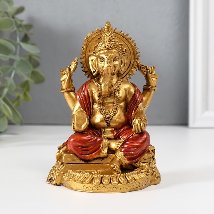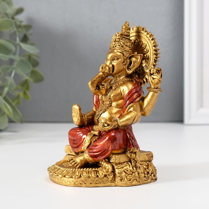 Нэцкэ полистоун "Ганеша в красном одеянии" 6,5х8,3х11,5 см