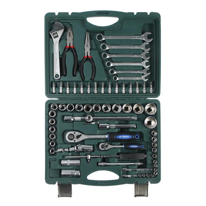 Набор инструментов в кейсе ТУНДРА, автомобильный, CrV, 1/2" и 1/4", 72 предмета