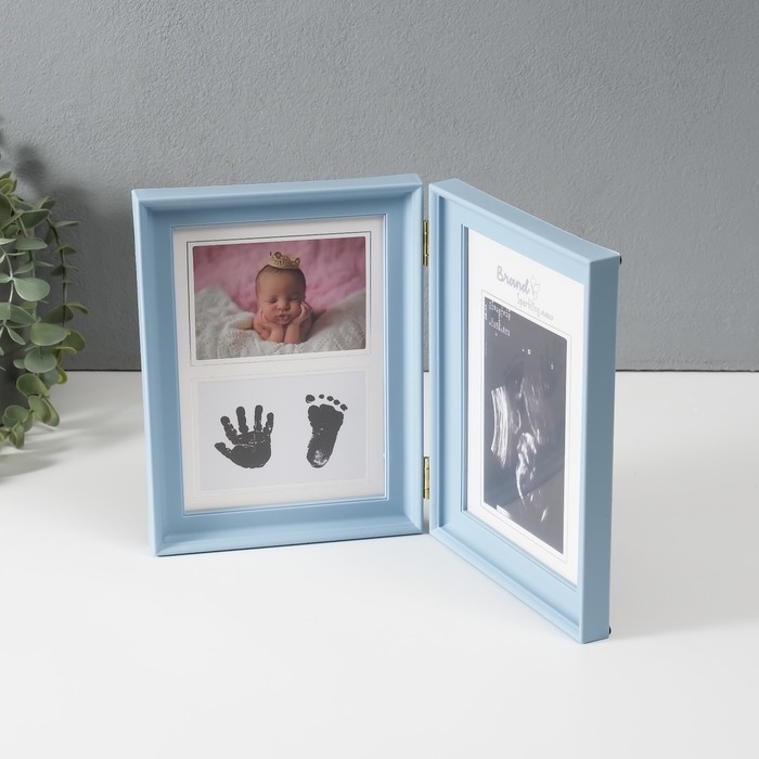 Фоторамка пластик 8х12 см "Наш малыш" голубая с рамкой для УЗИ 2х36,5х22,7 см