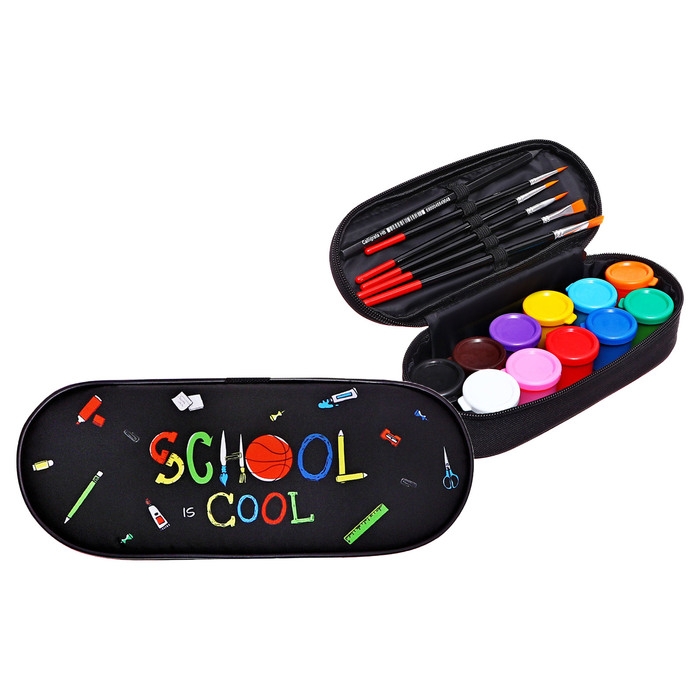 Пенал мягкий, 1 отделение, 95 х 205 х 45 мм, футляр, с наполнением 17 предметов, гуашь 11 цветов, Calligrata, School