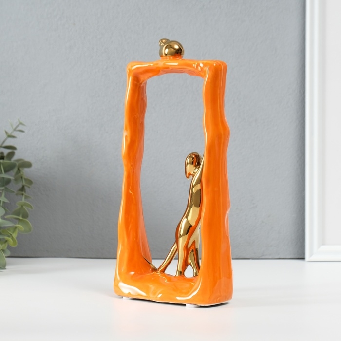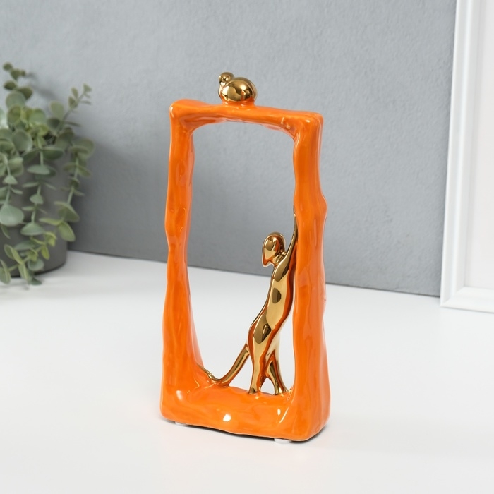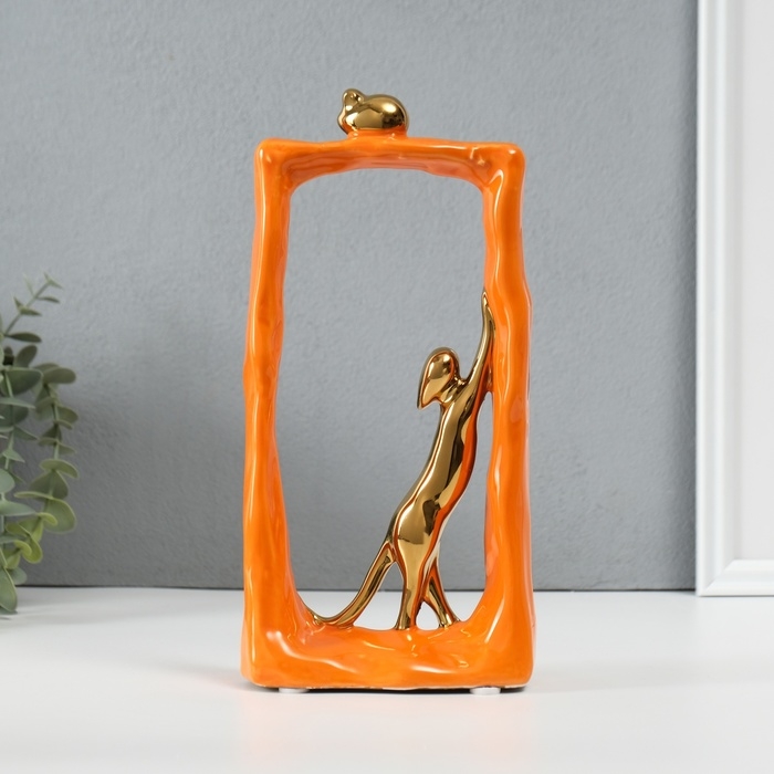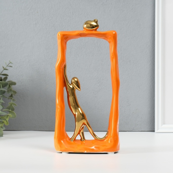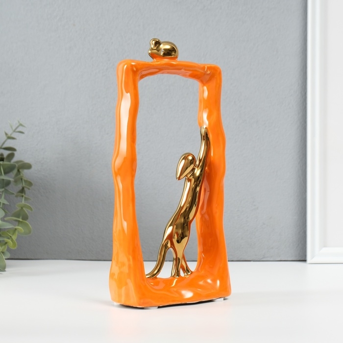 Сувенир керамика "Кошки-мышки - охота. Прямоугольник" оранжевый с золотом 6,2х12х24,5 см