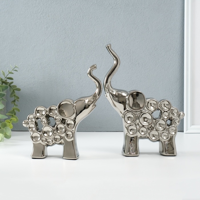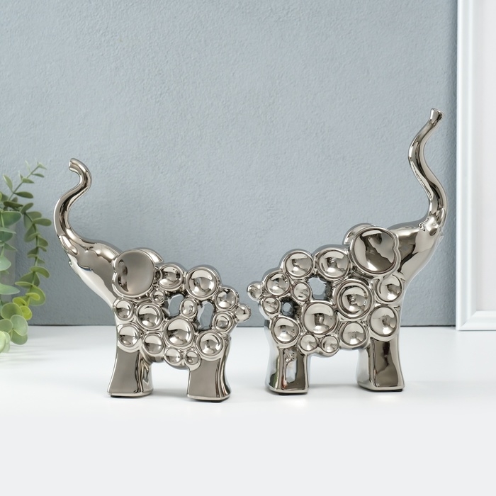 Сувенир керамика "Два слона - пузырьки" серебро набор 2 шт 4х17х18 5х16,5х22 см